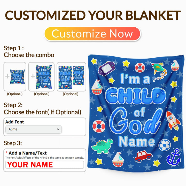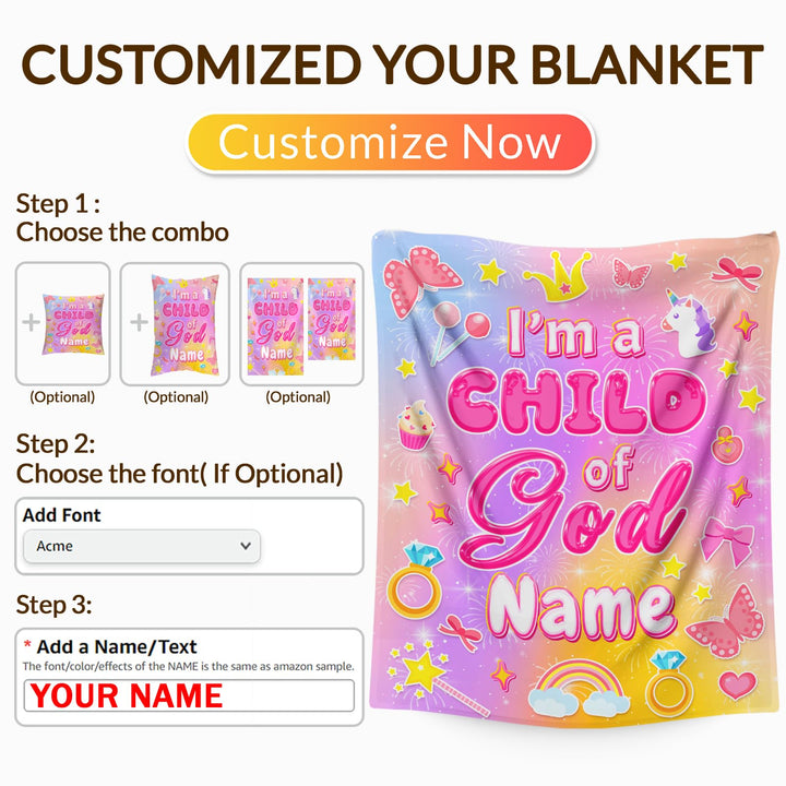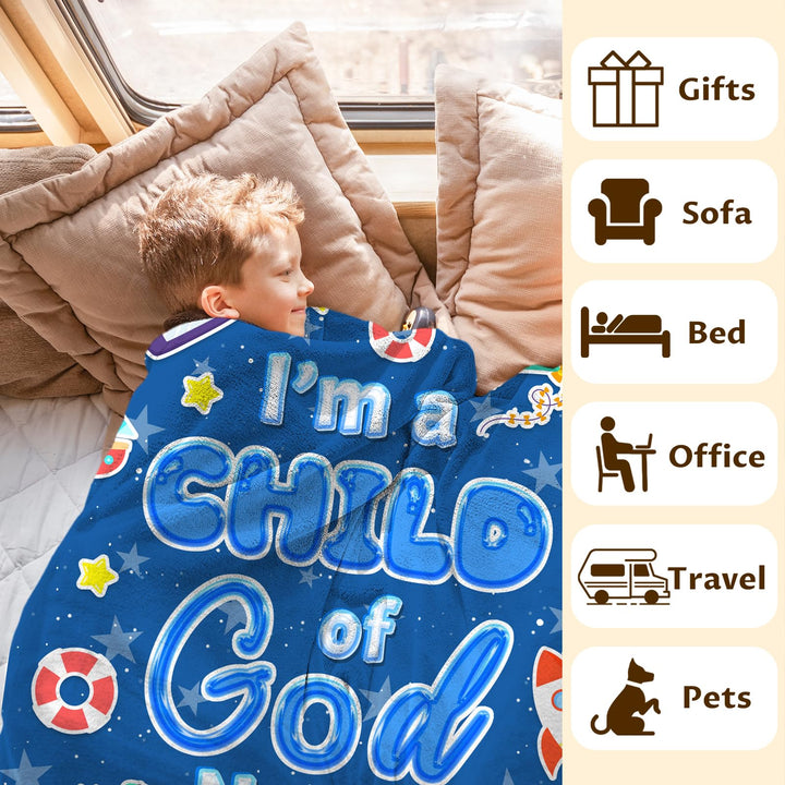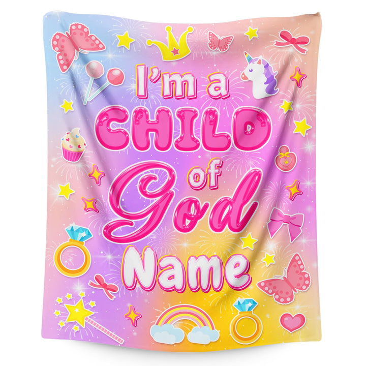 Christian Blanket for Girls, Personalized I am a Child of God Throw Blanket Gifts for Kids Girls Age 4-6, 40"x50" Pink Cute Custom Flannel Inspirational Blankets Gift Throws for Couch Sofa Bed Decor