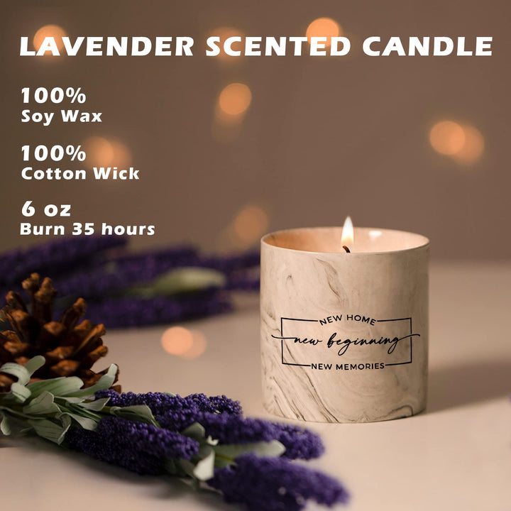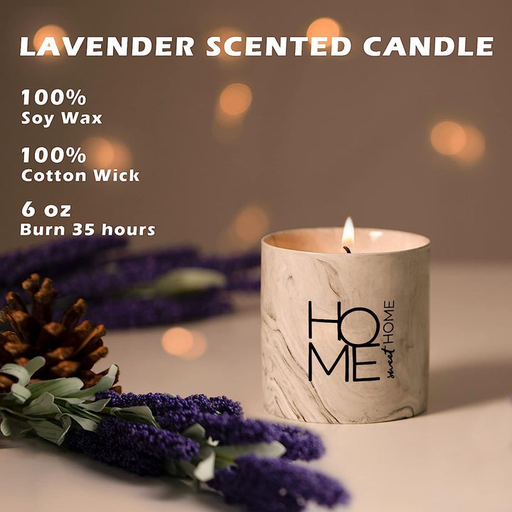 - 【Lavender Candle】Create a soothing ambiance with a scented Candle, handcrafted from natural soy wax and infused with pure lavender essential oil, enjoy the calming scent that fills the air. The 6-ounce candle burns for approximately 35 hours.