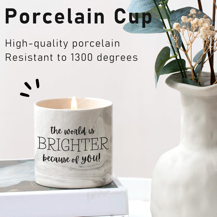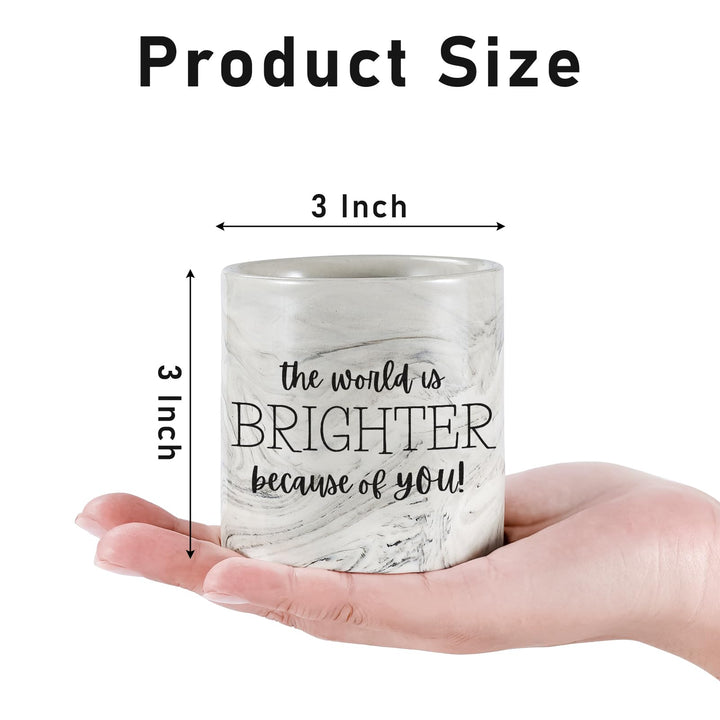 - 【Porcelain Cup】Designed in a marbled ceramic cup, fired at 1300°C for exceptional durability, this stylish container. The heartfelt message "The world is brighter because of you" is printed on the cup.