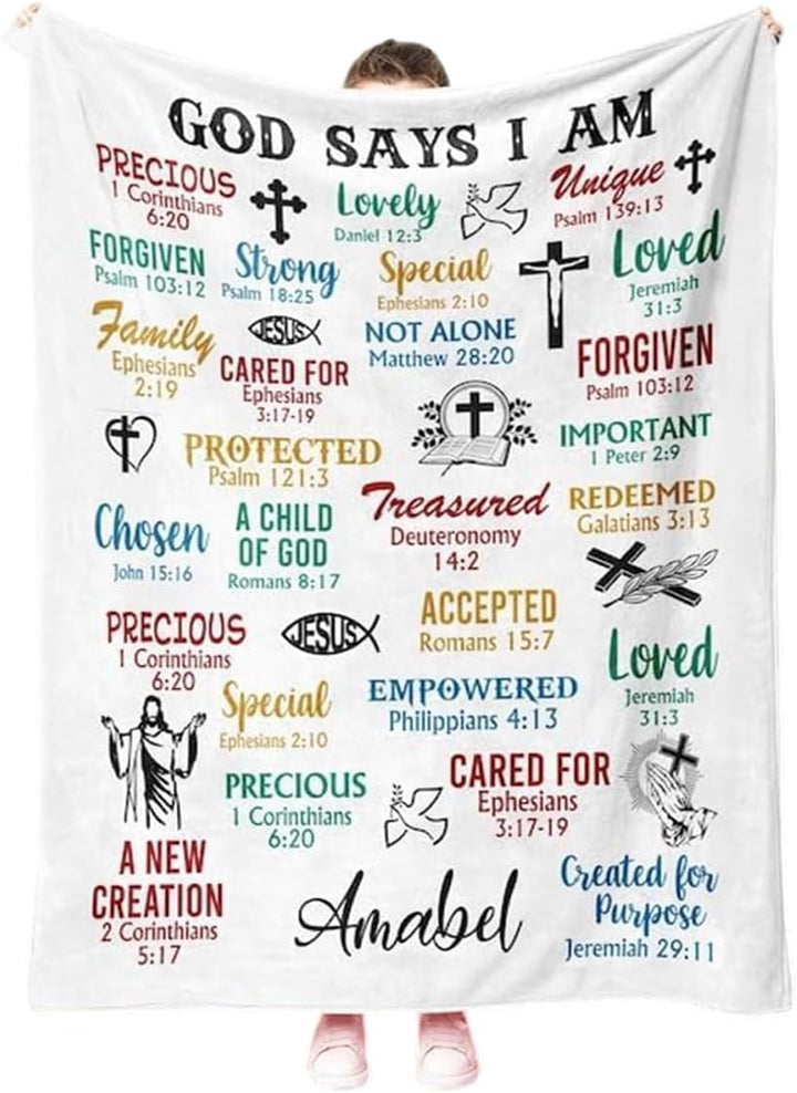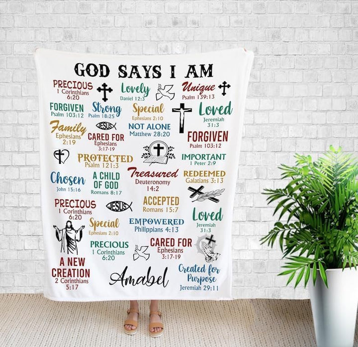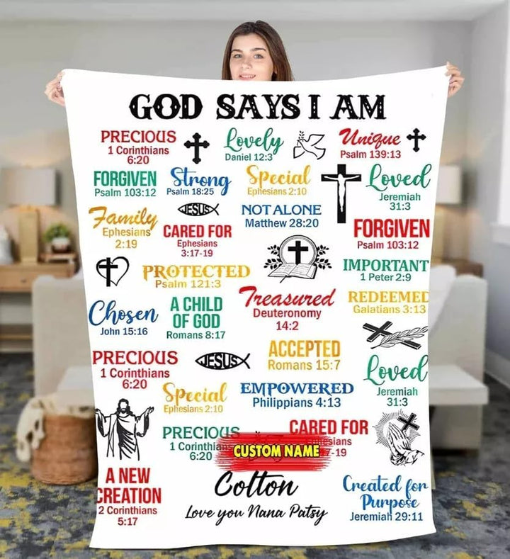God Say I Am, Custom Name, Personalized Blanket, Inspiration Quote, Christmas Throws, Family Gifts, Meaningful Ideas for Birthday, Anniversary