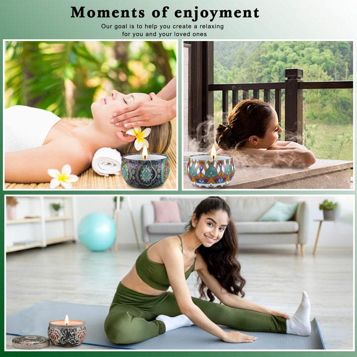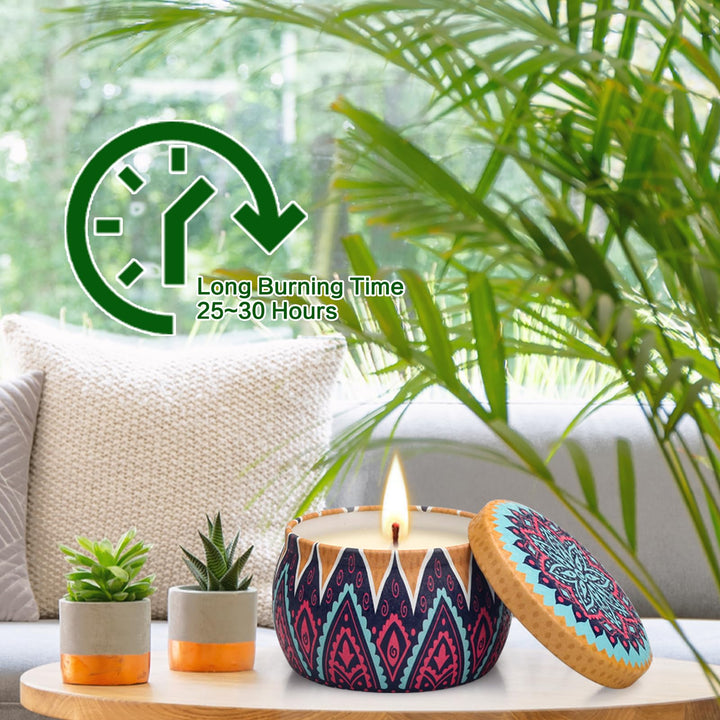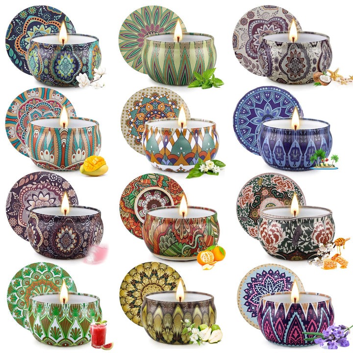 - Long Lasting Time - Each Jar candle contains 2.5 ounces of soy wax and lasts for over 20 hours, you can trim the wick to increase burn time. The complete burning time of 12 scented candles is approximately 240 hours.