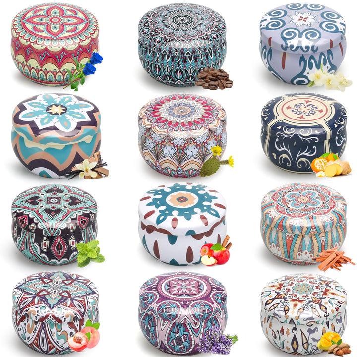 - Scented Candles Gift Set - Contains 12 Scents: Bergamot, Campfire Marshmallow, Apple Cinnamon, Juniper and Lavender, Orange Ginger, Mango Almond, Jasmine,ocean, Mahogany Teak, Sage, Lavender, Sandalwood